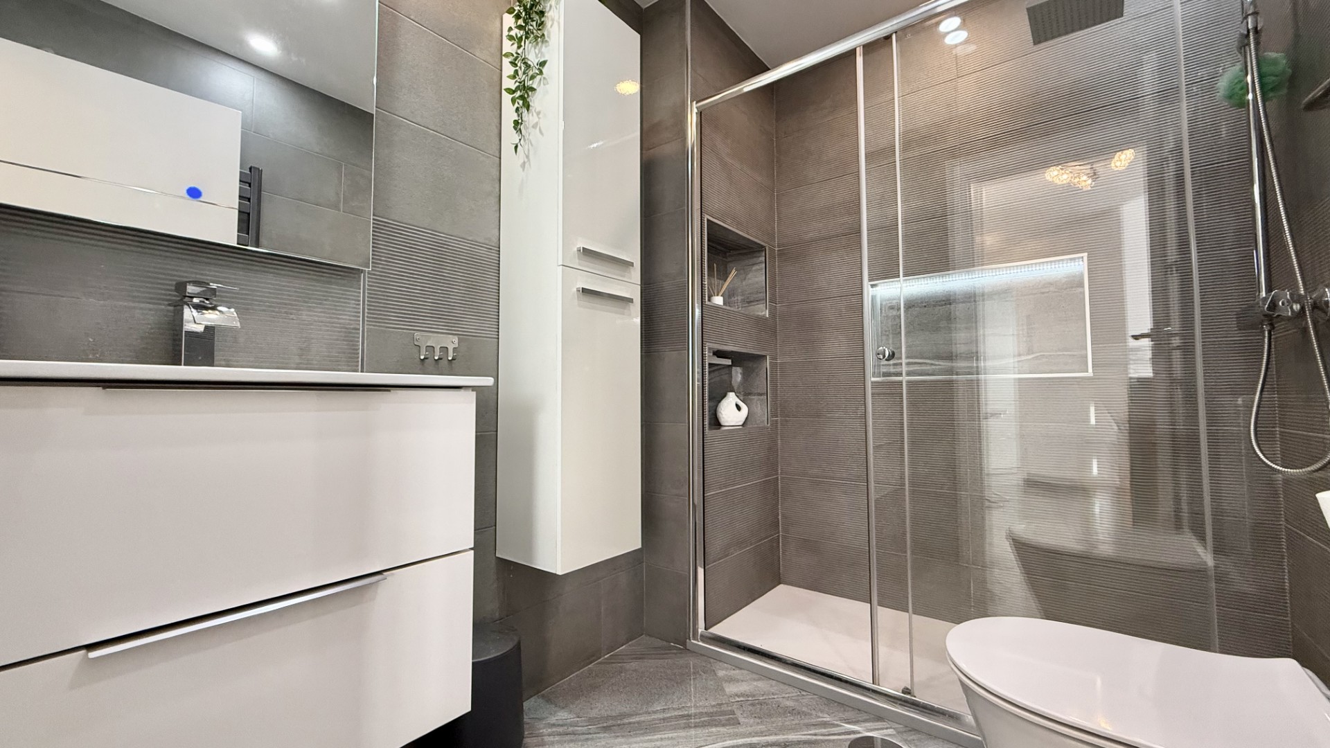 The kitchen has been stylishly refurbished, combining contemporary finishes with practicality, while both bedrooms are spacious, serene, and designed with comfort in mind. The bathroom, too, has been finished to an exceptional standard, adding to the home’s sense of quality and care.