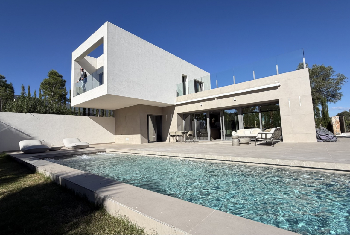 On an idyllically private, south facing plot, framed by pines trees, this is a home designed to maximise light and seclusion. On a 699 m² plot, every window opens to greenery, sky or pool. The result is an atmosphere of calm, privacy and uninterrupted space.